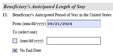1. Part 3 (page 5), Item 12 asks about beneficiary's length of stay. Brit says enter some near